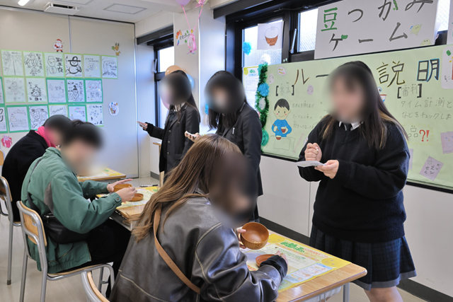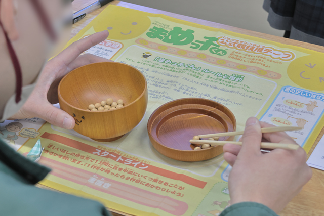 やってみると結構本気(マジ)になってしまう豆つかみゲームを行いました。