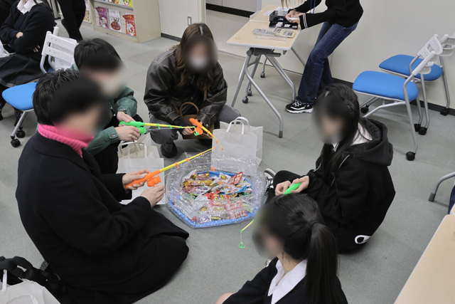 同会場ではミニ縁日コーナーを設けて「お菓子釣り」を行いました。