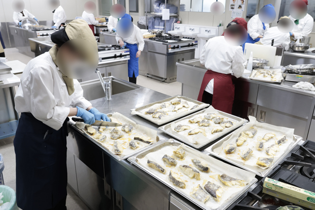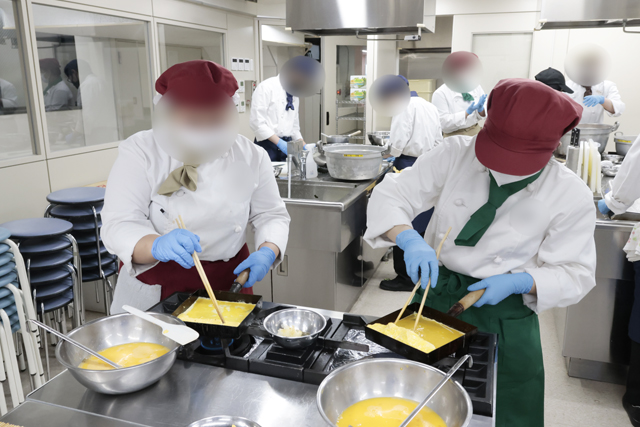 生徒が各部門に分かれて調理を行い、かなり手の込んだお弁当を作りました。