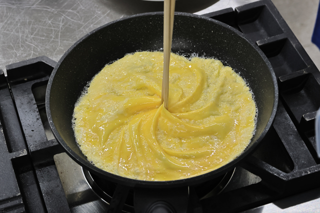 焼くときの火加減や時間により変化していく卵のドレスがとても面白いのです。